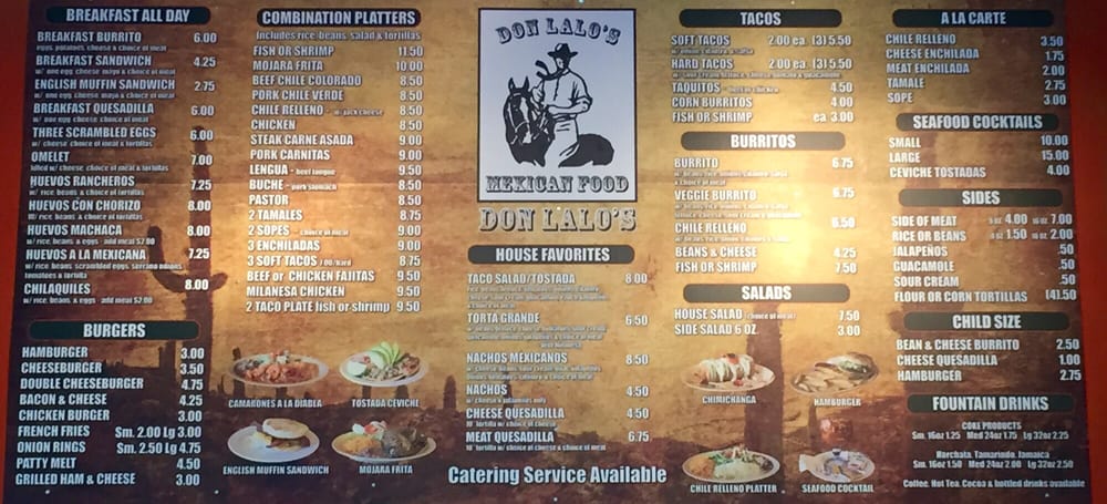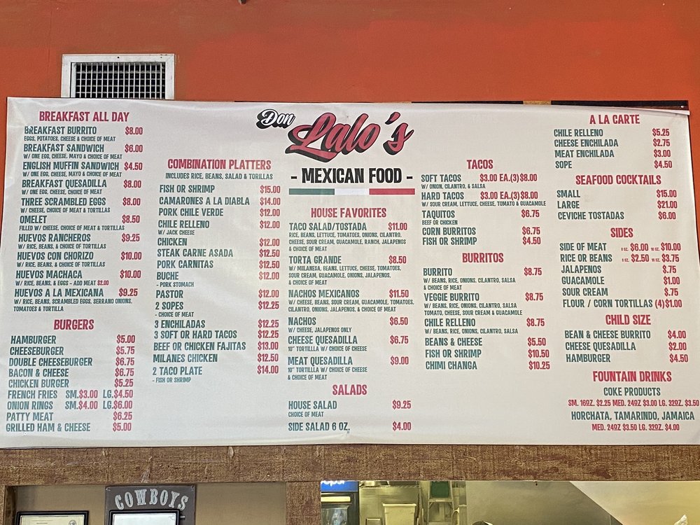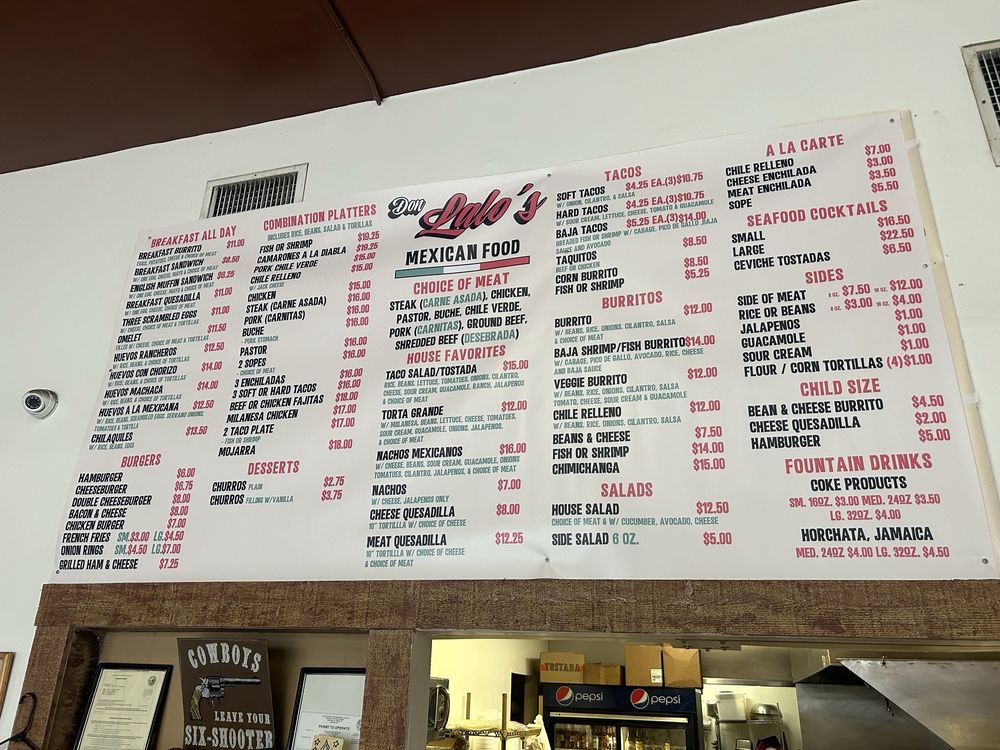 Introducing Don Lalo's Mexican Food, a cozy Mexican restaurant located in Ojai, CA. This hidden gem offers a variety of authentic Mexican dishes, from crispy steak tacos to flavorful shrimp tacos and mouthwatering chile relleno. The menu also features must-try items like nachos Mexicanos with chorizo and a delicious Chile Relleno burrito. Customers rave about the fresh flavors and top-notch service, making it a go-to spot for locals and visitors alike. Don Lalo's also prides itself on its daily specials, introducing patrons to traditional dishes like Albondigas soup and Tacos de Cabeza. With ample seating, a charming outdoor patio, and a welcoming atmosphere, this restaurant is a must-visit for anyone craving Mexican cuisine with a hometown feel. Don't miss out on the opportunity to indulge in the best that Don Lalo's has to offer.